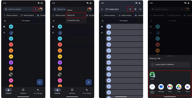درصورتیکه میخواهید مخاطبان شبکههای اجتماعی نیز در این فایل وجود داشته باشد، باید ابتدا از روشهای انتقال مخاطبین تلگرام به گوشی یا هر شبکهی اجتماعی دیگر موردنظر خود استفاده کرده و سپس مراحل زیر را دنبال کنید: