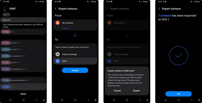 - روی Export contacts (صادرکردن مخاطبین) ضربه بزنید و یکی از سیمکارتها را انتخاب کنید.