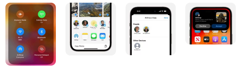 همان‌طور که در بخش «ایردراپ آیفون چیست» اشاره شد، با این قابلیت می‌توانید عکس‌ها، ویدیوها، فایل‌های فشرده، مخاطبین، مکان‌های نقشه و حتی رمزهای عبور را به‌صورت ایمن برای دیگران ارسال کنید.
