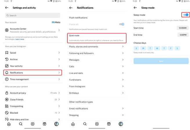 چگونه حالت سکوت اینستاگرام را روشن کنیم؟