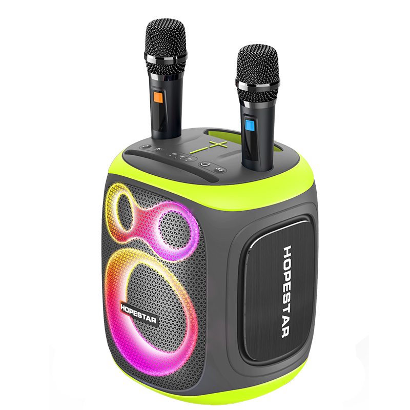 - میکروفونهای بیسیم و قابلیت کارائوکه: این اسپیکر با دو عدد میکروفون بیسیم همراه با قابلیت کارائوکه، امکان اجرای برنامههای زنده و سرگرمکننده را فراهم میکند.