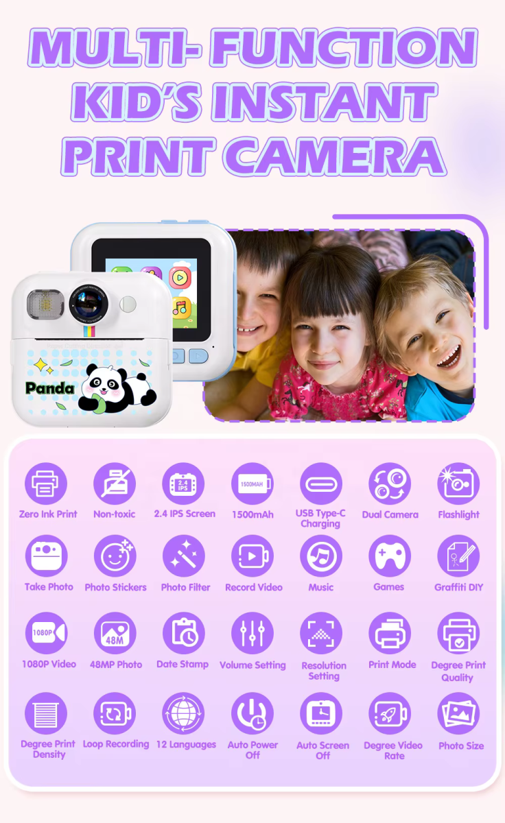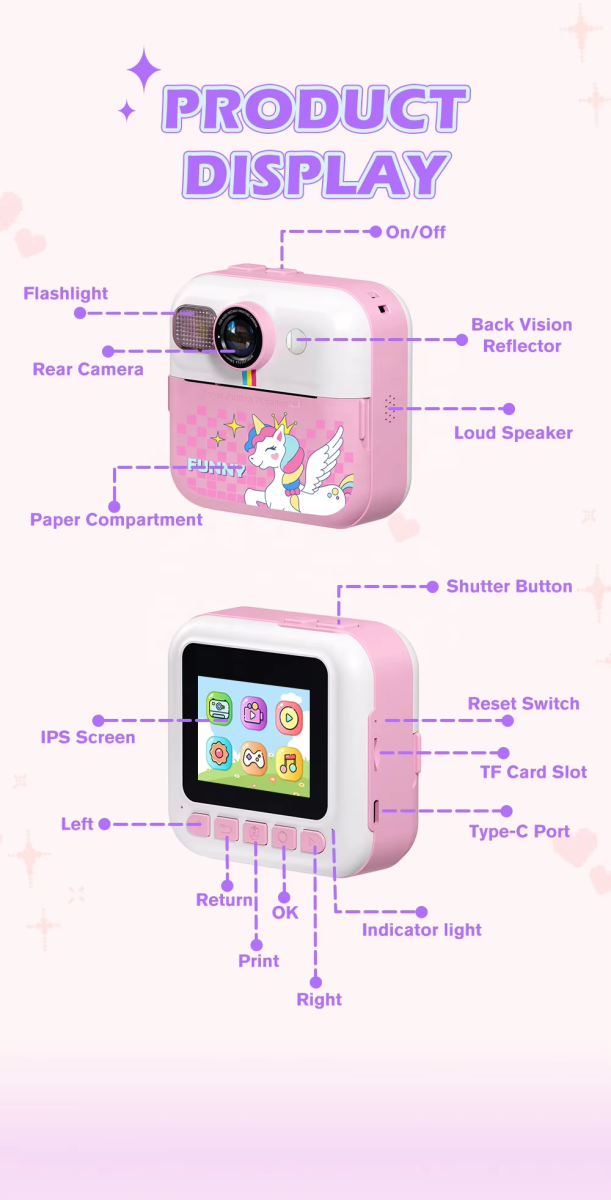 • بازی‌های سرگرم‌کننده: دوربین دیجیتال پرینت فوری 3+ دارای چند بازی ساده است که می‌تواند ساعت‌ها سرگرمی را فراهم کند.