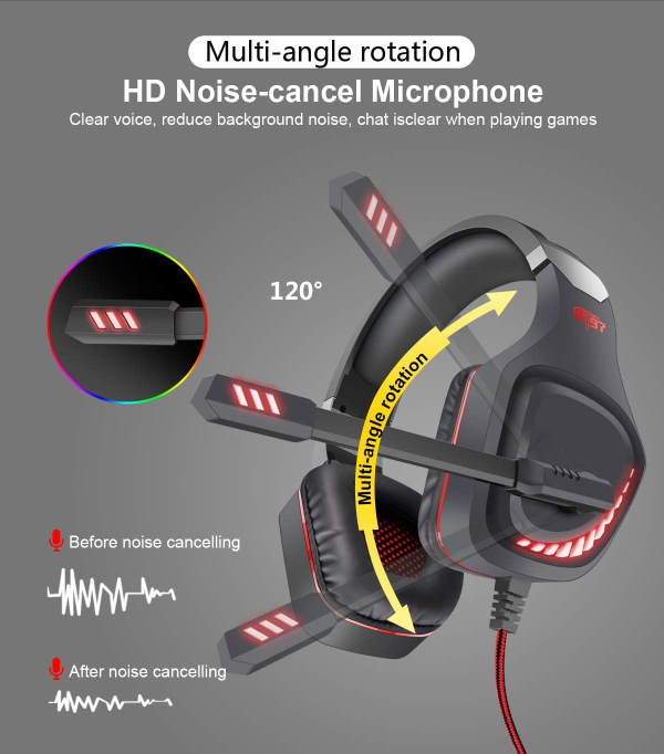 میکروفون قابل تنظیم: میکروفون با قابلیت چرخش، امکان ارتباط واضح و بدون نویز را در طول بازی فراهم میکند.