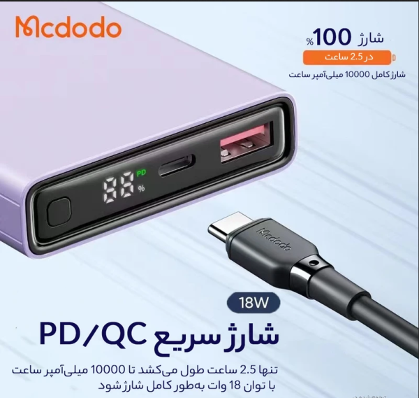 شارژ سریع و موثر: پاوربانک MC-294 از فناوریهای شارژ سریع PD3.0 و QC3.0 که به شما امکان میدهد دستگاههای خود را به سرعت و با کارآیی بالا شارژ کنید.