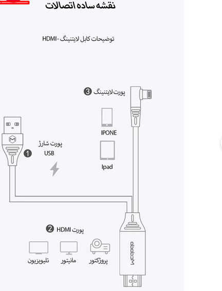نوع کابل: تبدیل HDMI به لایتنینگ/USB